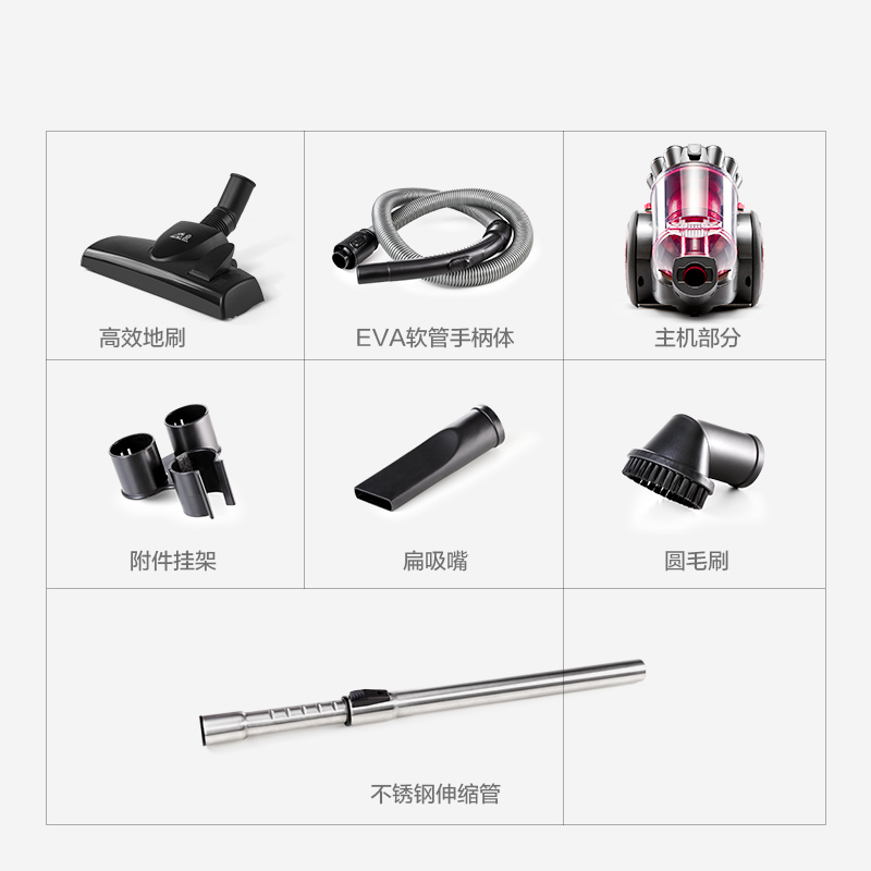 1600W大功率,雙重肘式設計,立體清潔,配超薄地刷,輕松完成270°無死角除塵。